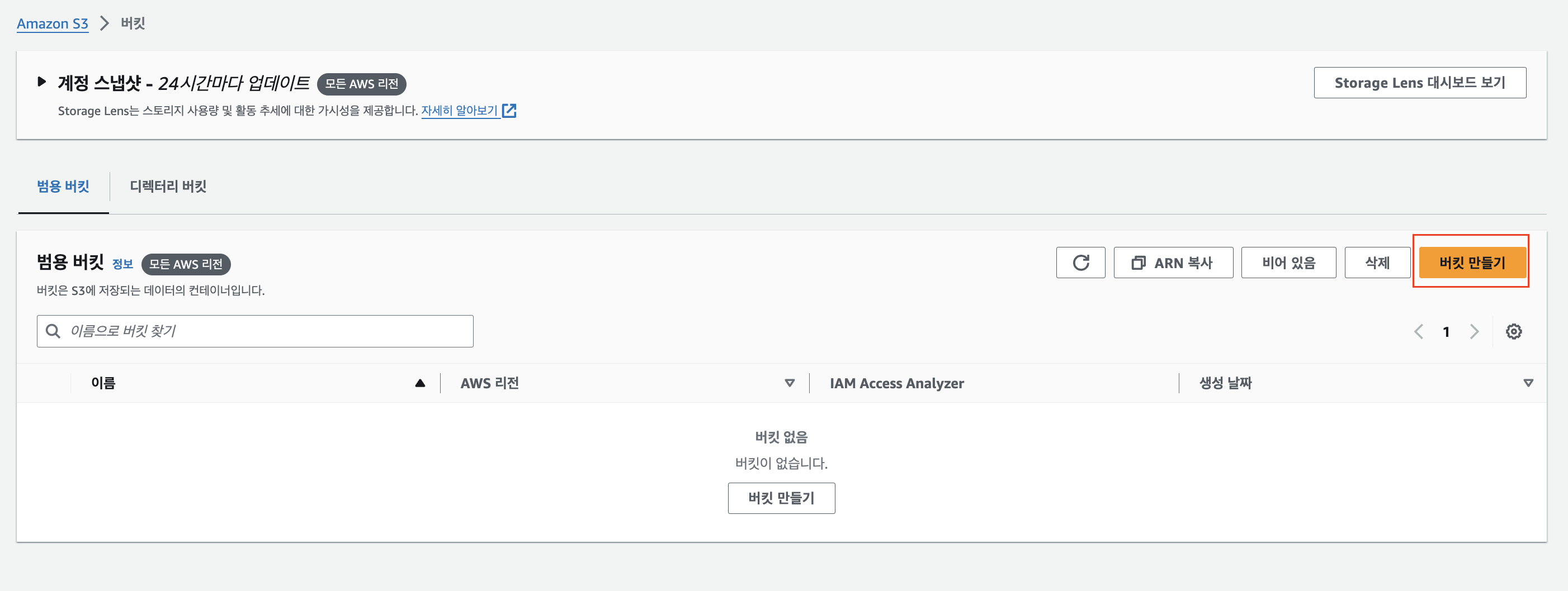 이후 나머지 설정은 그대로 둔 뒤 버킷 만들기 클릭