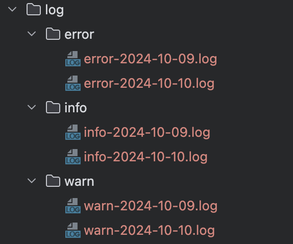 - INFO, WARN, ERROR 각 레벨 및 날짜별로 나누어서 파일로 저장