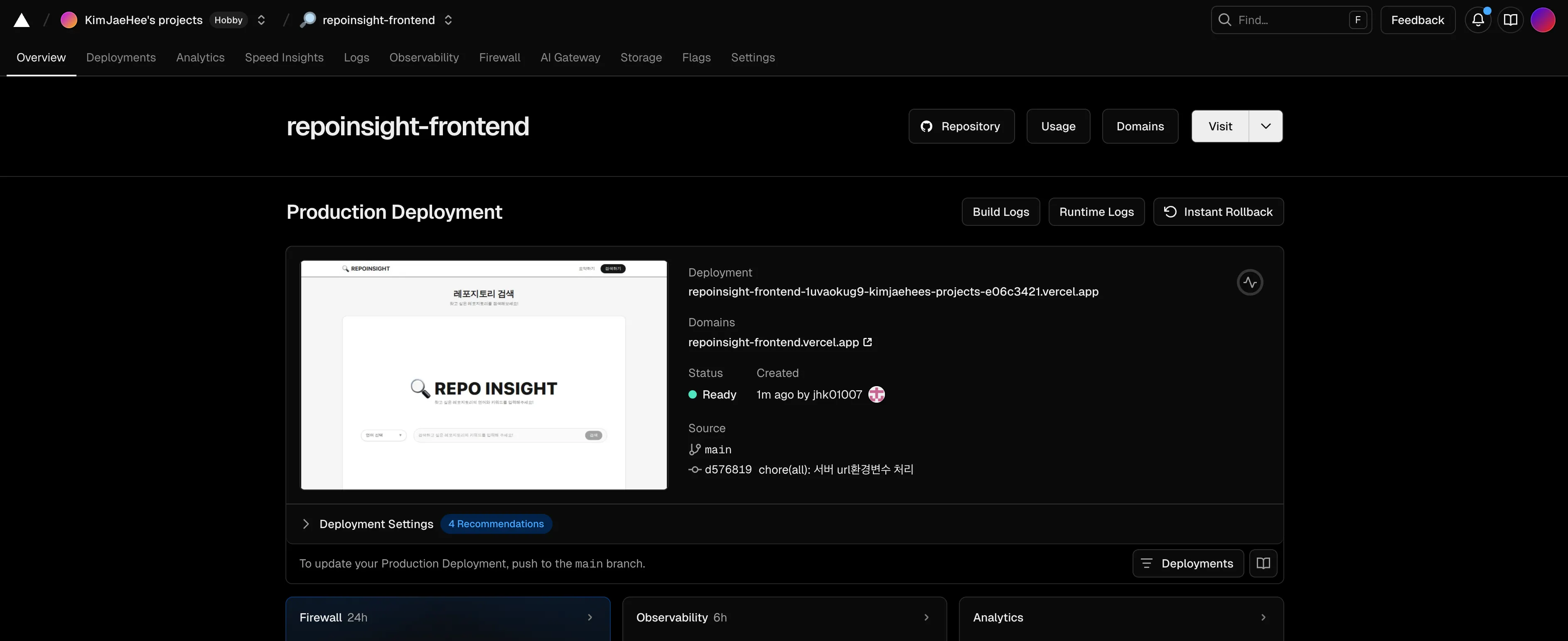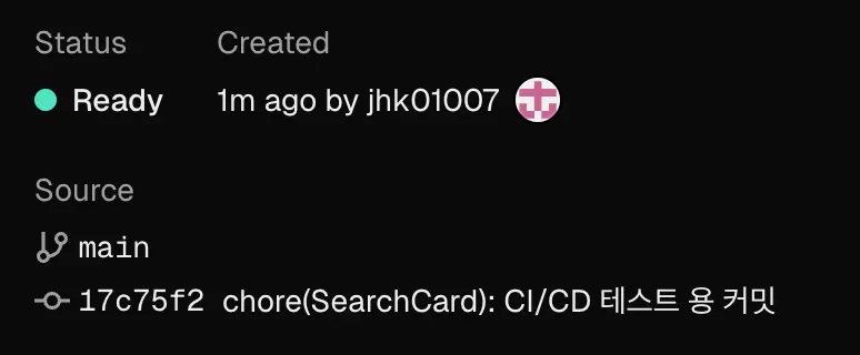 Vercel은 별다른 코드를 작성하지 않고도 기본적으로 CI/CD 기능을 제공한다.