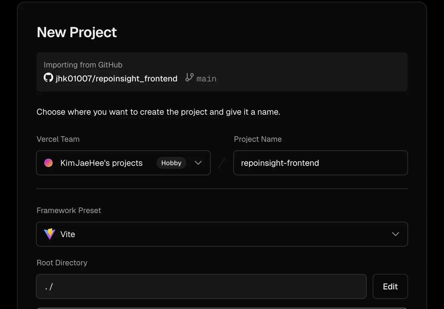 여기서 프론트엔드를 Vercel로 배포해보도록 하자.