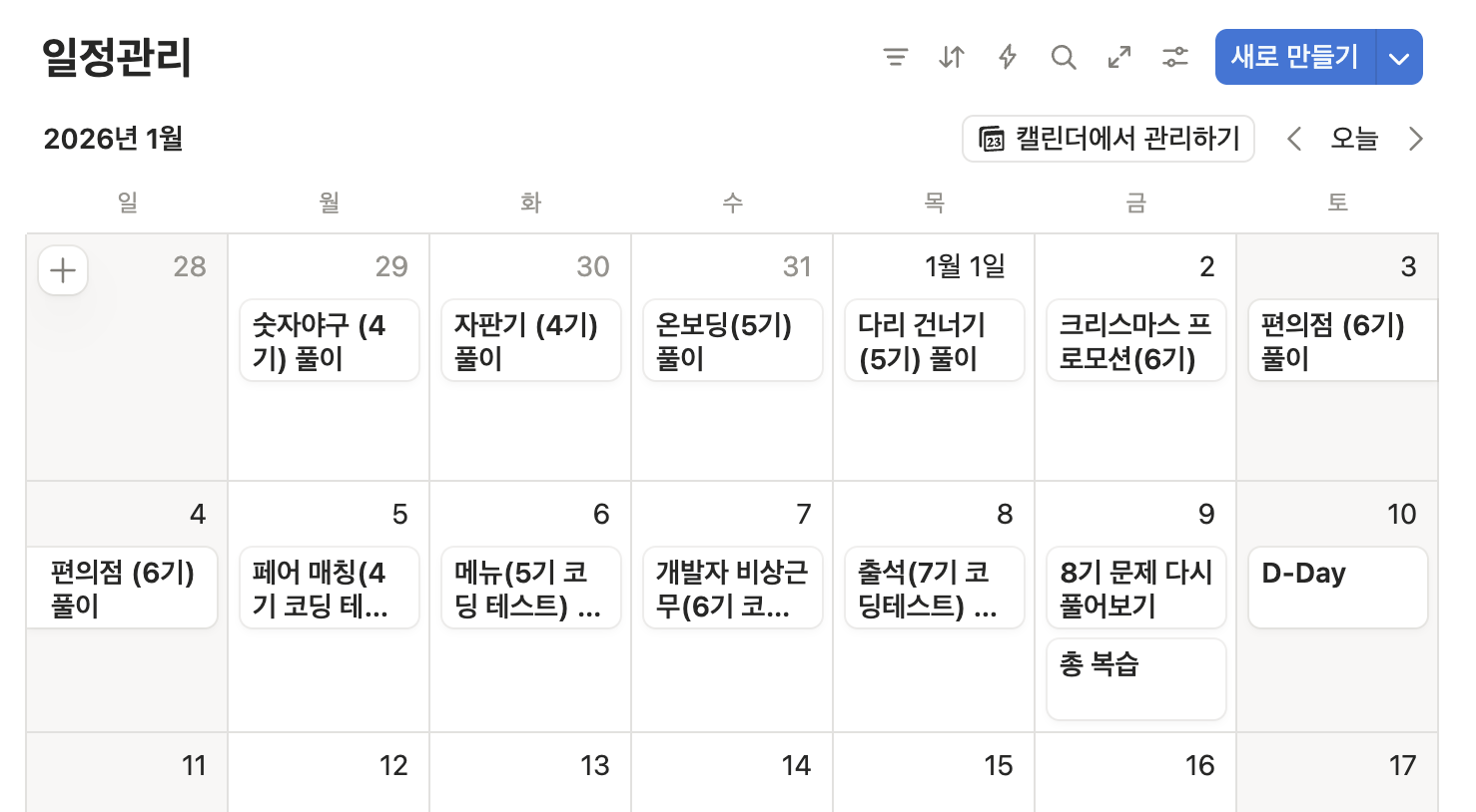 4기부터 7기까지의 프리코스 및 코딩테스트 문제를 노션에 정리해보니 중복제외 10문제가 나왔다. 앞으로 코딩테스트까지 약 2주정도의 시간이 있었기 때문에 하루에 한문제씩 풀자고 마음먹었다.